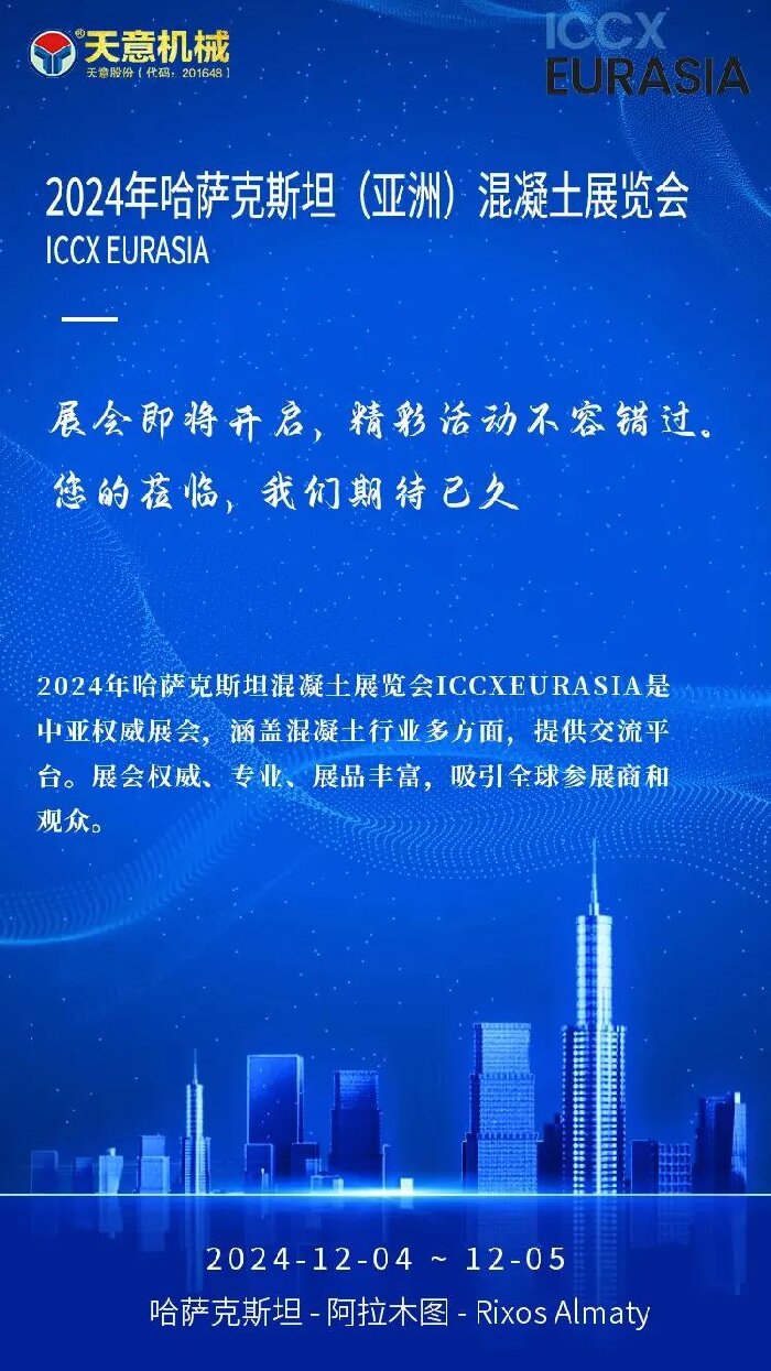 此次參加哈薩克斯坦混凝土展覽會(huì),不僅是展示公司實(shí)力和技術(shù)的重要機(jī)會(huì),更是開拓中亞市場(chǎng)、尋找合作伙伴的有效途徑。哈薩克斯坦作為中亞地區(qū)的重要國(guó)家,其建筑和基礎(chǔ)設(shè)施建設(shè)項(xiàng)目眾多,對(duì)混凝土產(chǎn)品的需求量大。天意機(jī)械將借此機(jī)會(huì),深入了解中亞市場(chǎng)需求,積極尋求與當(dāng)?shù)仄髽I(yè)和專業(yè)人士的合作機(jī)會(huì),共同推動(dòng)混凝土行業(yè)的發(fā)展。